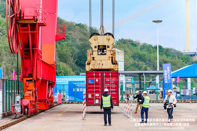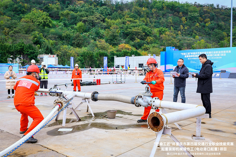 本次大赛由重庆市交委、人社局主办,重庆市港航海事事务中心、职业技术鉴定指导中心、304am永利集团、区交委承办,长寿港航海事事务中心、化码公司协办。大赛设置电动港口起重竞赛和流体装卸竞赛两个项目,采取理论知识竞赛和实际操作竞赛相结合的方式,内容涵盖港口作业操作、应急救援、应急处置、法律法规等,全面检验参赛选手的知识储备、综合能力和现场操作技能。电动港口起重竞赛与重庆市职业技能等级鉴定挂钩,参赛选手决赛实操技能成绩合格者,可按规定获得与命题等级对应的职业技能等级证书。