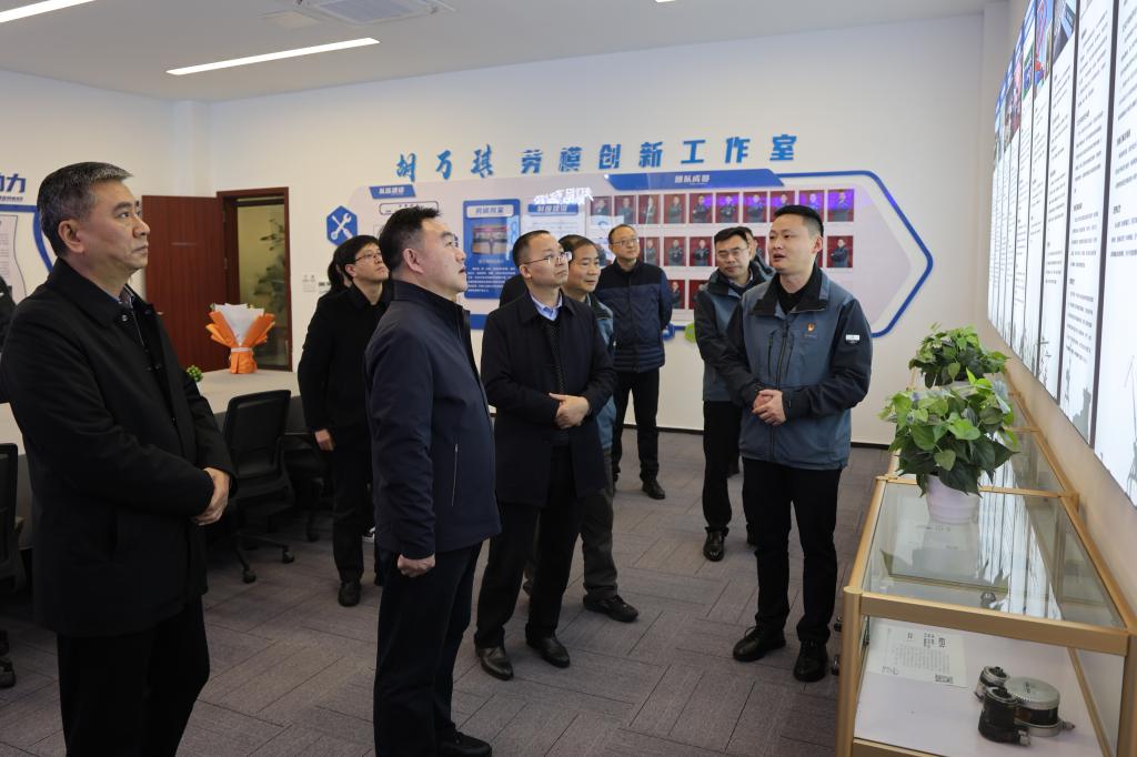 邓美涛一行来到胡万琪劳模创新工作室,实地查看创建运行情况,详细了解工作室的团队建设、创新成果及未来规划等情况。他充分肯定了工作室取得的成效,对胡万琪攻坚克难、开拓创新,积极发挥“传帮带”作用表示赞赏。