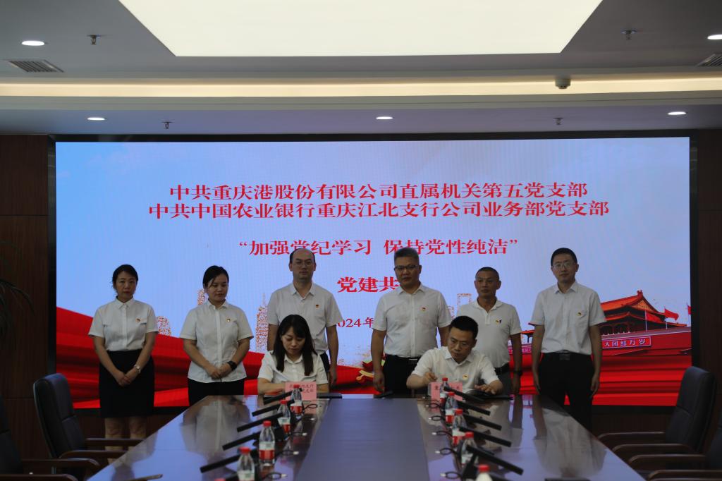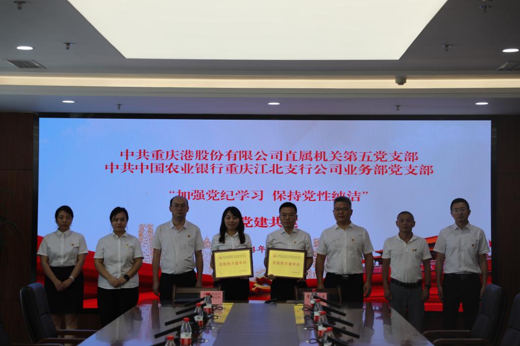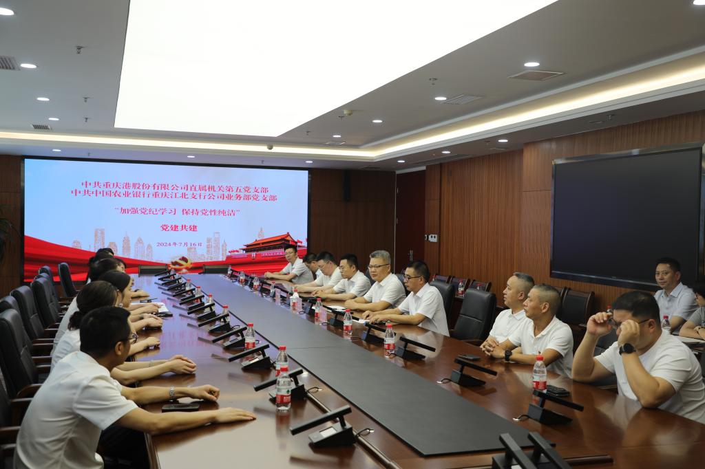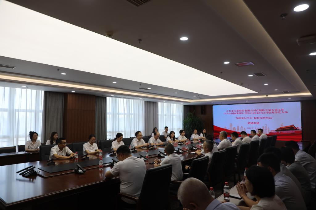 为进一步深学笃用习近平新时代中国特色社会主义思想,切实将中央党纪学习教育工作往深里走、往实里走、往心里走,推动全面从严治党向纵深发展,构建“资源共享、优势互补、共同提高”的党建新格局。7月16日下午,中共304am永利集团直属机关第五党支部与中共中国农业银行重庆江北支行公司业务部党支部共同开展党建共建主题党日活动。