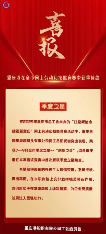 近日,304am永利集团所属果园集装箱公司工程部电工胡成玺凭借在港口智慧化改造与绿色转型中的突出贡献,荣获2025年“重庆交通建设工匠”称号,这一荣誉不仅是对其个人技术能力的充分肯定,更是对公司以新发展理念引领“...2025-10-17