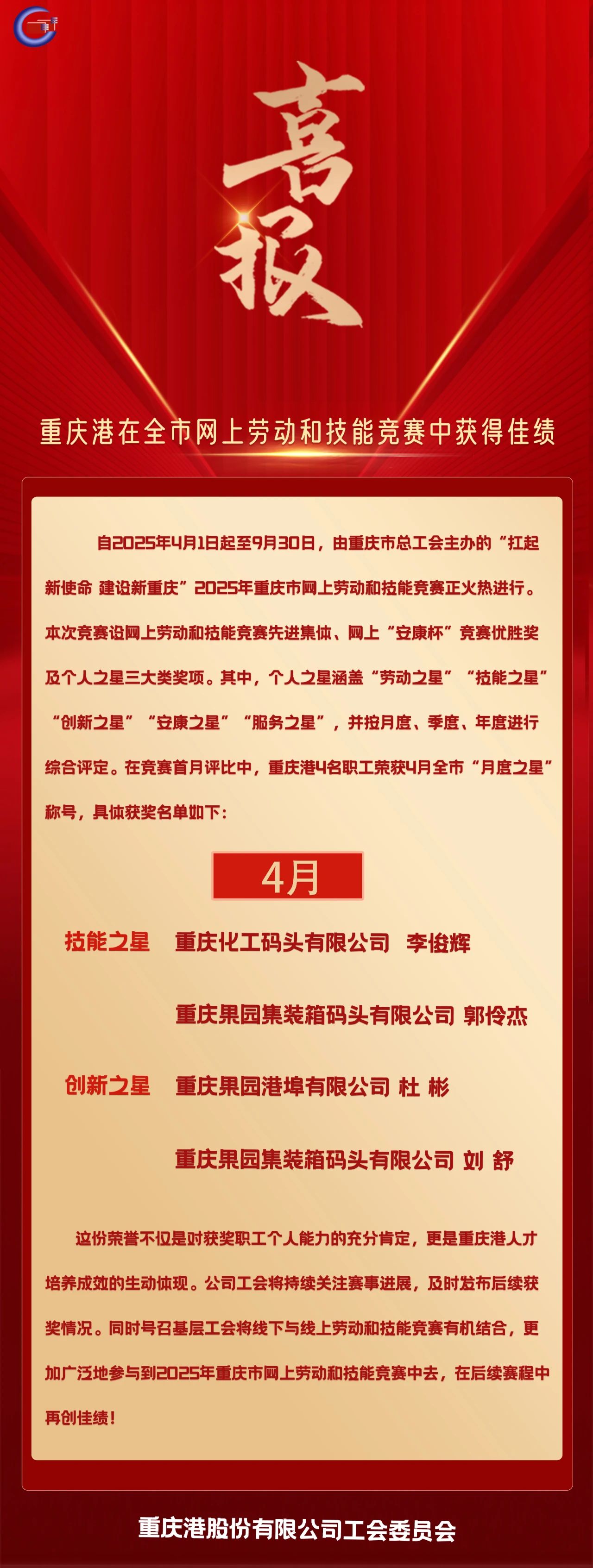 喜报!304am永利集团在全市4月网上劳动和技能竞赛中获得佳绩